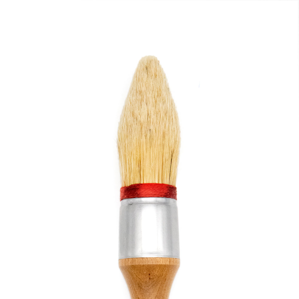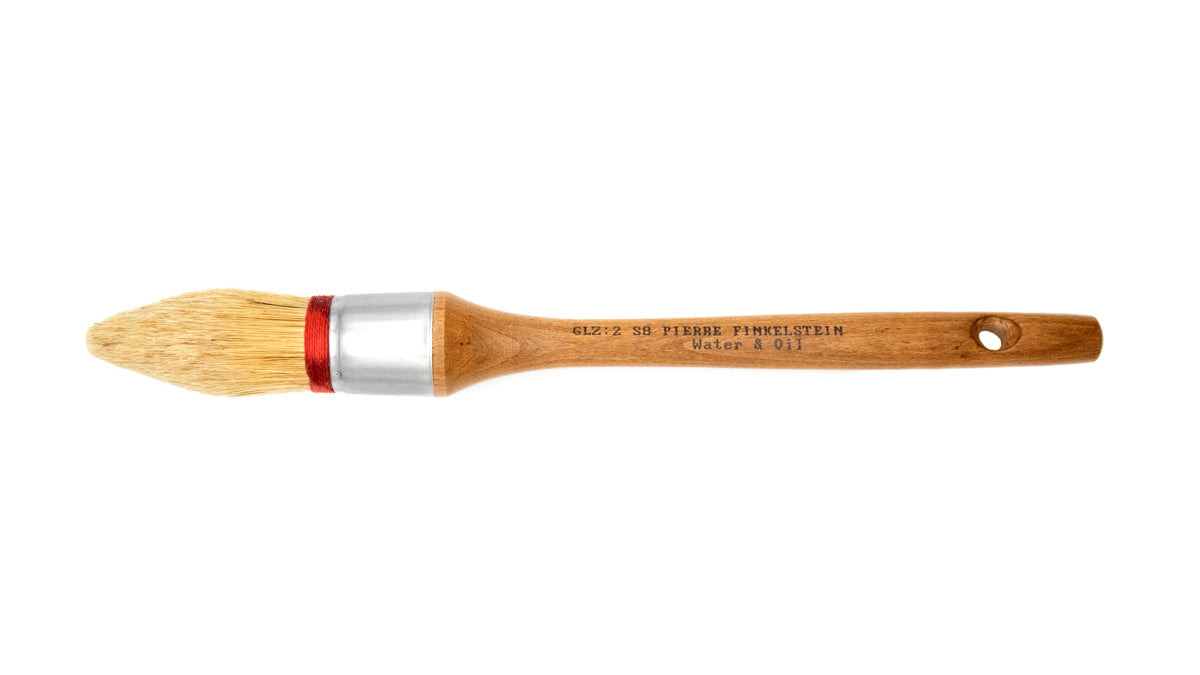 Our ULTIMATE SERIES POINTED glazing (sash) brush has a classic round shape for ultimate paint medium dispersion. It is used to apply glaze, paint, wax, and thin textures. Use like a standard paint brush or scrubbing motion.