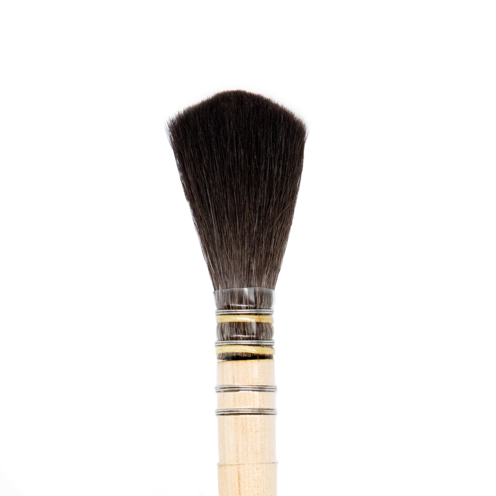 Most of our large and fine hair brushes are hand-set and made with different hairs that are tapped in a small copper cylinder before being glued into the ferrule. This is why some of the hairs are not properly affixed to the ferrule, so the brush will shed some hair the first few times you will use it.