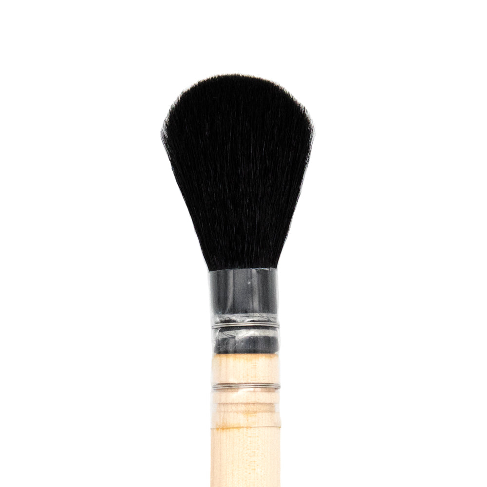 Made with goat hair - a stiffer and more economic version of a gilding mop is used to gently tap and smooth metal leaf that has been applied to a sized surface. If the metal was applied using the entire leaf, it is recommended to use a Gilder's Tip to transfer the leaf. A gilding mop is also used to skewer excess gold and for final burnishing. This classic round shape will reach deep profiles. The mop can also be used to apply water size to curved molding and relief areas.